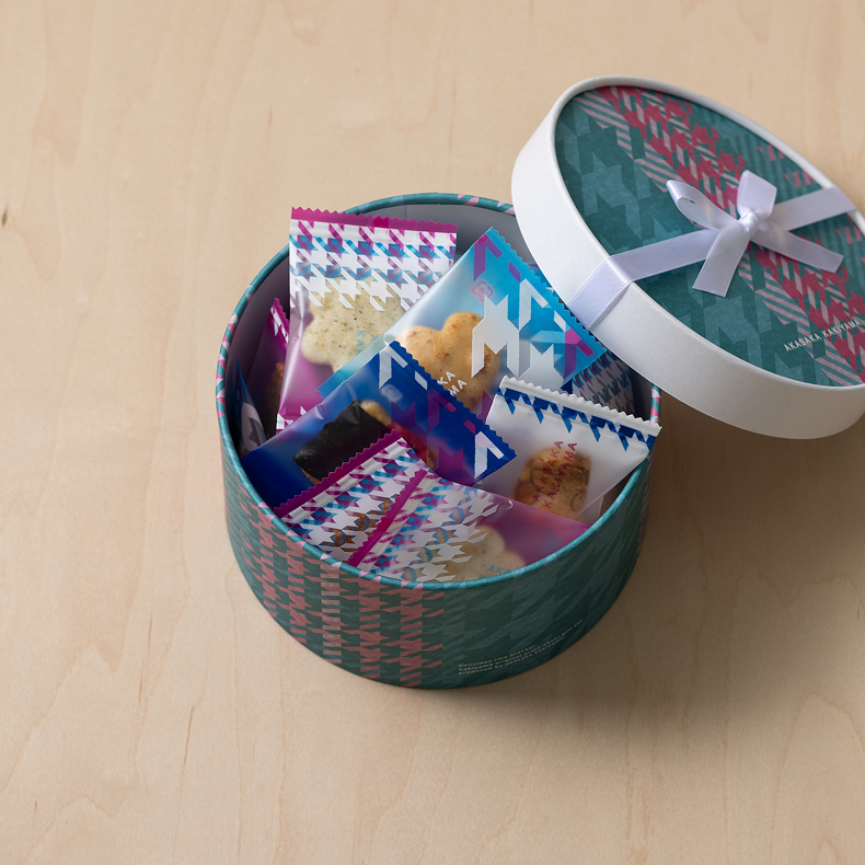 レトロモダンなデザインのお箱に定番から限定のお味まで入った欲張りなお詰合せです。個包装でたくさん入っておりますので、シーンを問わずお使いいただけます。